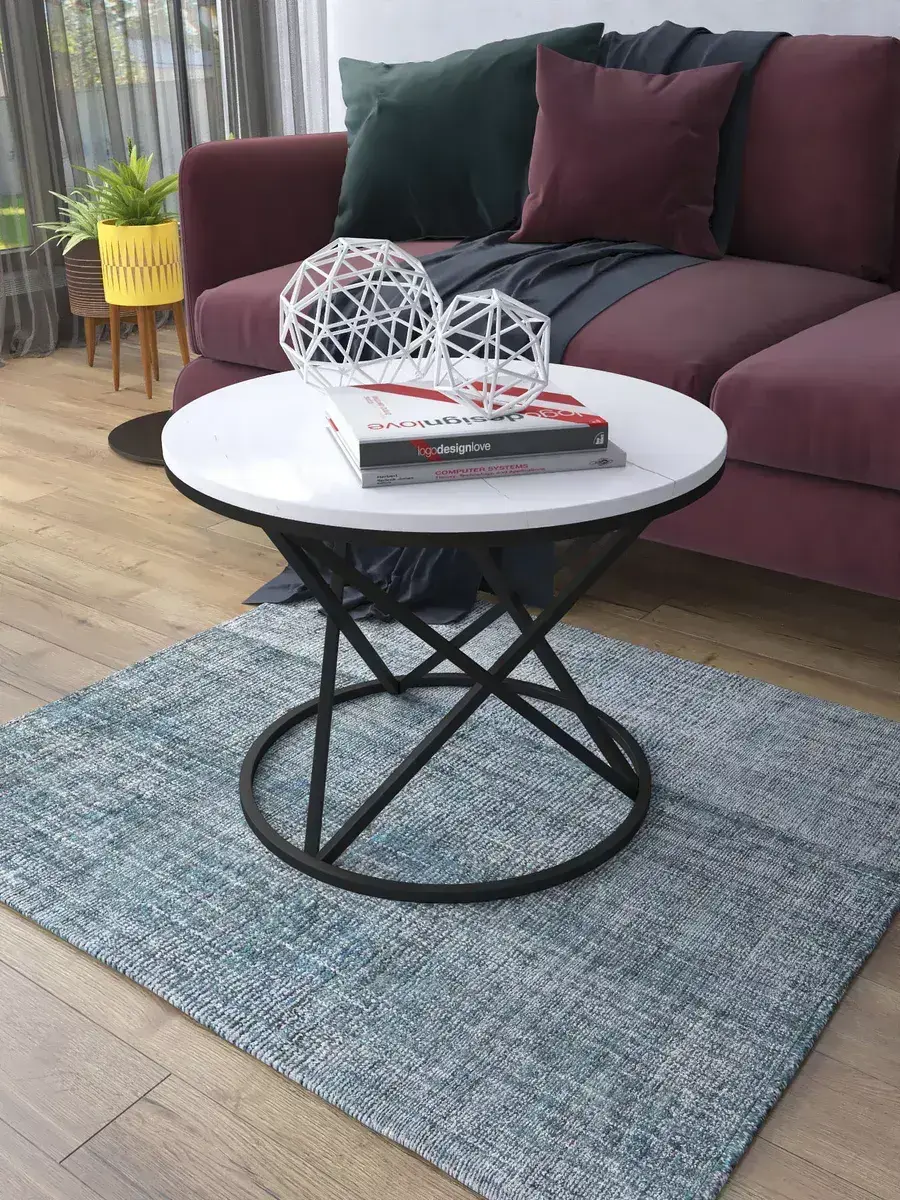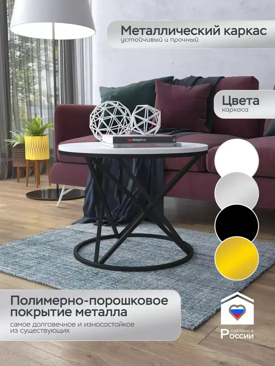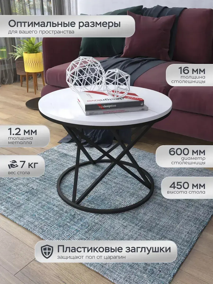 Журнальный стол "Звёздный" — это стильное и функциональное дополнение к вашему интерьеру. Его уникальный дизайн и высокое качество сразу привлекают внимание. Столешница влагостойкая, а основание покрыто прочной полимерно-порошковой краской. Благодаря этому он не только привлекательно выглядит, но и очень практичен. Конструкция столика надёжна, он выдерживает нагрузку на столешницу до 30 кг. Это позволяет разместить на нём различные предметы декора или напитки. Цвет основания: черный, столешницы: мрамор белый глянцевый. Основание выполнено из квадратной профильной трубы 15х15 толщиной 1.2мм Этот журнальный столик удобен в использовании. Он не царапает пол и не шатается, обеспечивая дополнительный комфорт при эксплуатации. Производство в России гарантирует высокое качество товара и его соответствие всем стандартам. Кроме того, столик поставляется уже собранным. Вам не придётся тратить время и силы на его сборку. Просто распакуйте его и наслаждайтесь преимуществами этого прекрасного изделия. Круглый журнальный столик со столешницей под мрамор — это не просто мебель. Это настоящее произведение искусства, которое подчеркнёт ваш вкус и станет главным акцентом в вашем доме. Покупая этот столик, вы получаете не только функциональную мебель, но и предмет декора, который добавит шарма и уюта в ваше пространство. Не упустите возможность купить этот уникальный журнальный столик и создать уютный уголок в вашем доме, который будет радовать вас каждый день.