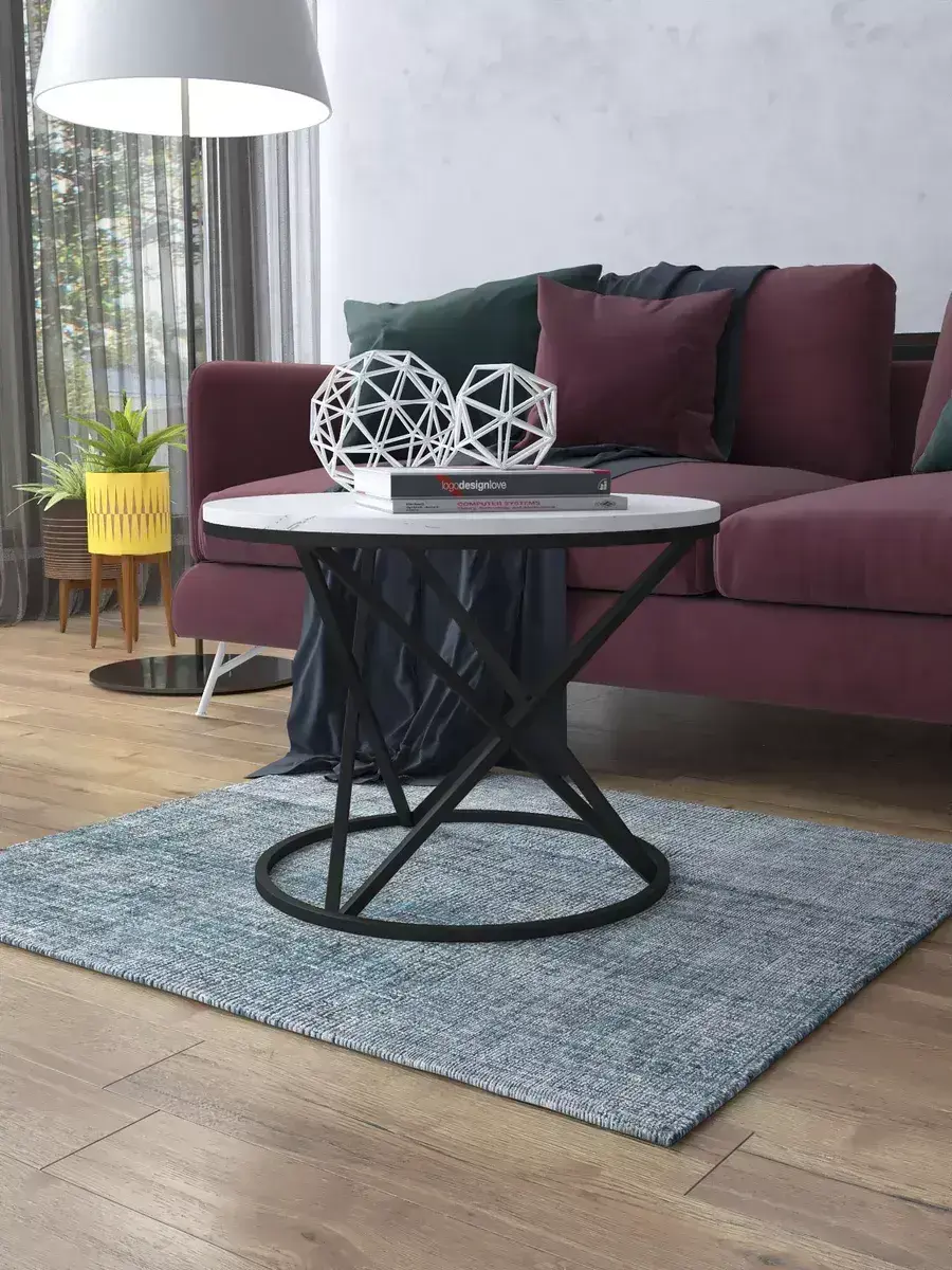 Журнальный стол "Звёздный" — это стильное и функциональное дополнение к вашему интерьеру. Его уникальный дизайн и высокое качество сразу привлекают внимание. Столешница влагостойкая, а основание покрыто прочной полимерно-порошковой краской. Благодаря этому он не только привлекательно выглядит, но и очень практичен. Конструкция столика надёжна, он выдерживает нагрузку на столешницу до 30 кг. Это позволяет разместить на нём различные предметы декора или напитки. Цвет основания: черный, столешницы: мрамор серебро белый глянцевый. Основание выполнено из квадратной профильной трубы 15х15 толщиной 1.2мм Этот журнальный столик удобен в использовании. Он не царапает пол и не шатается, обеспечивая дополнительный комфорт при эксплуатации. Производство в России гарантирует высокое качество товара и его соответствие всем стандартам. Кроме того, столик поставляется уже собранным. Вам не придётся тратить время и силы на его сборку. Просто распакуйте его и наслаждайтесь преимуществами этого прекрасного изделия. Круглый журнальный столик со столешницей под мрамор — это не просто мебель. Это настоящее произведение искусства, которое подчеркнёт ваш вкус и станет главным акцентом в вашем доме. Покупая этот столик, вы получаете не только функциональную мебель, но и предмет декора, который добавит шарма и уюта в ваше пространство. Не упустите возможность купить этот уникальный журнальный столик и создать уютный уголок в вашем доме, который будет радовать вас каждый день.